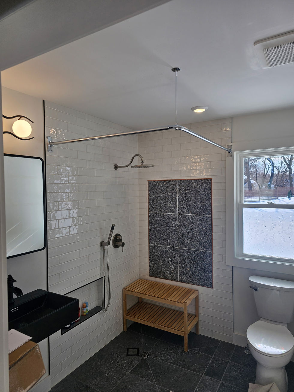 Indulge in our luxurious bathroom retreats, featuring modern fixtures, marble tiles, and spacious roll in shower designs. Our designs offer a perfect blend of elegance and functionality, creating a serene and rejuvenating space for your home. Side open oven, roll under ADA sink, roll under cooktop, expanded door opening, ease of use hardware, safety upgrades, custom storage solutions, and access ramp installations complete the package.